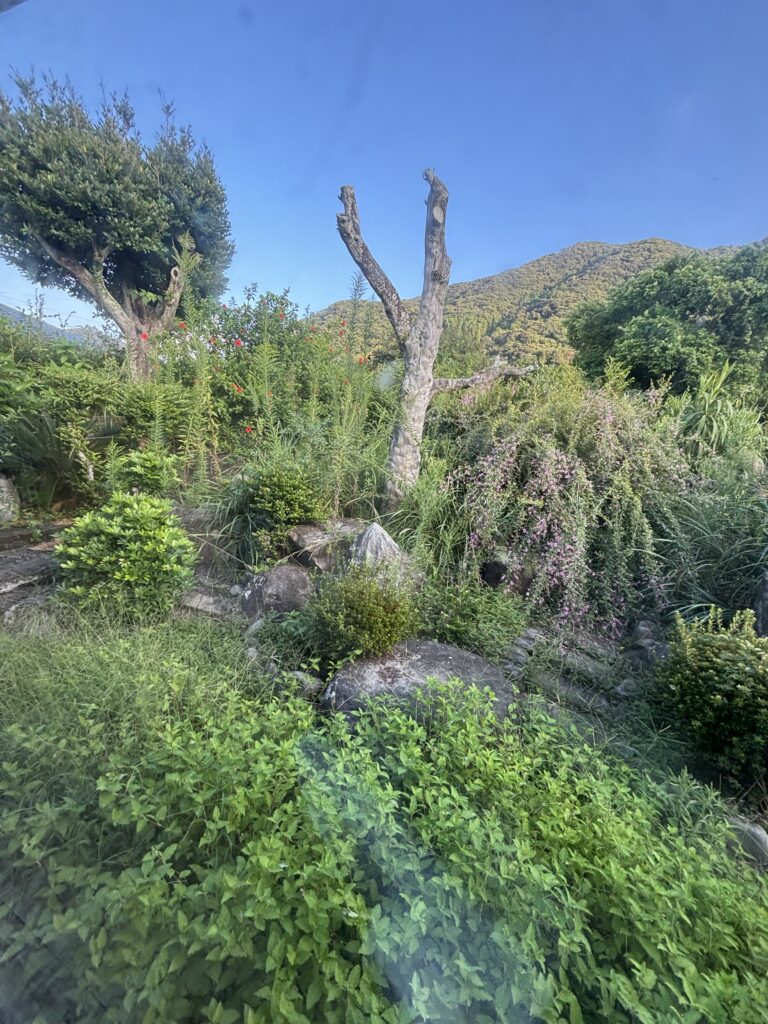 石垣に囲まれた中庭はプライベートな空間で、ベンチを置いて読書や休憩の場として活用することもできます。