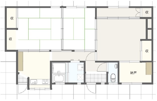 6畳と8畳の和室に8畳の洋室+納戸のコンパクトな間取りです。