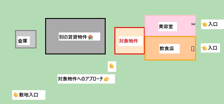 美容室と飲食店と併設された物件ではありますが、各店舗の入口は独立しており、プライバシーや独立性が確保されています。