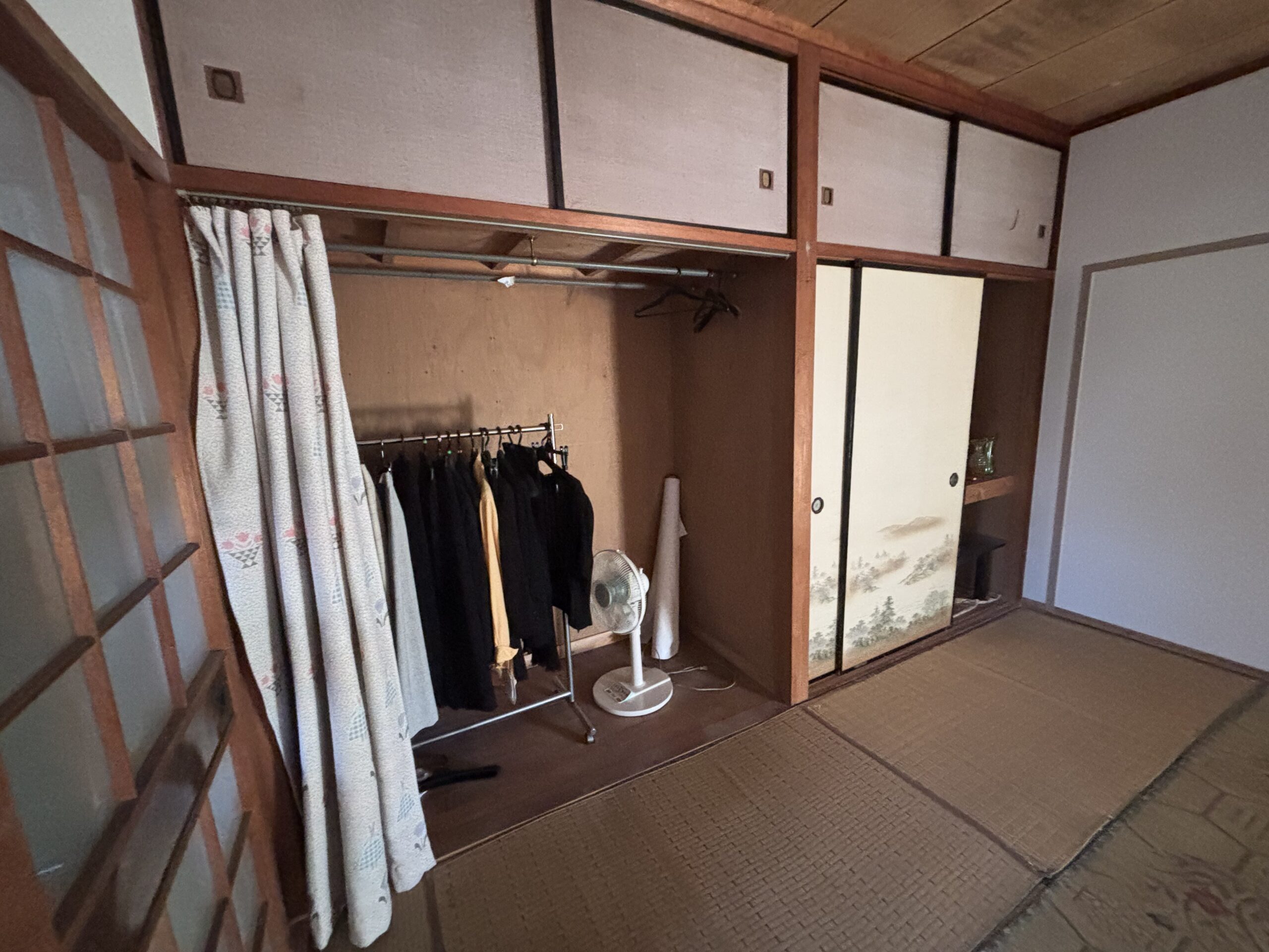 洋室の奥には3畳程の納戸があり、季節用品や趣味の道具の収納場所や書斎としての利用も出来ます。縁側にも収納スペースがあります。