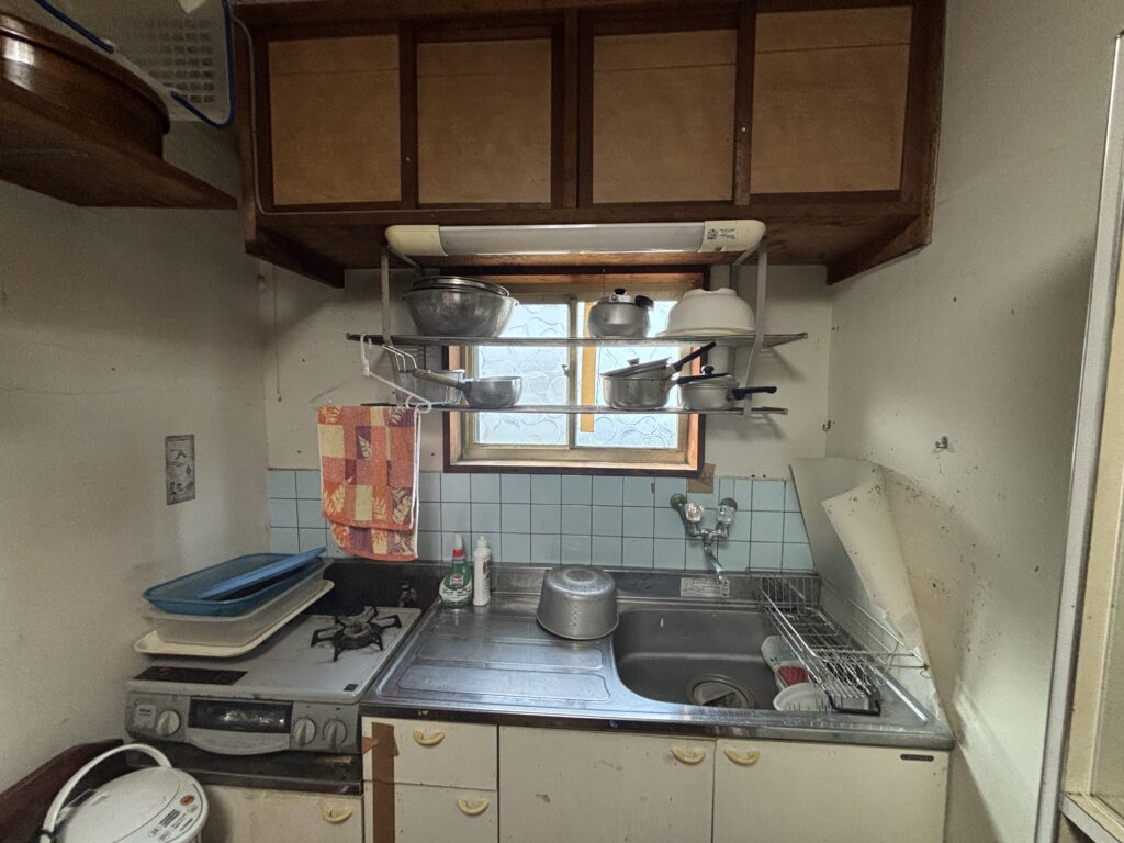 コンパクトなキッチンですが、吊戸棚がありシンク下にも十分な収納スペースがあります。