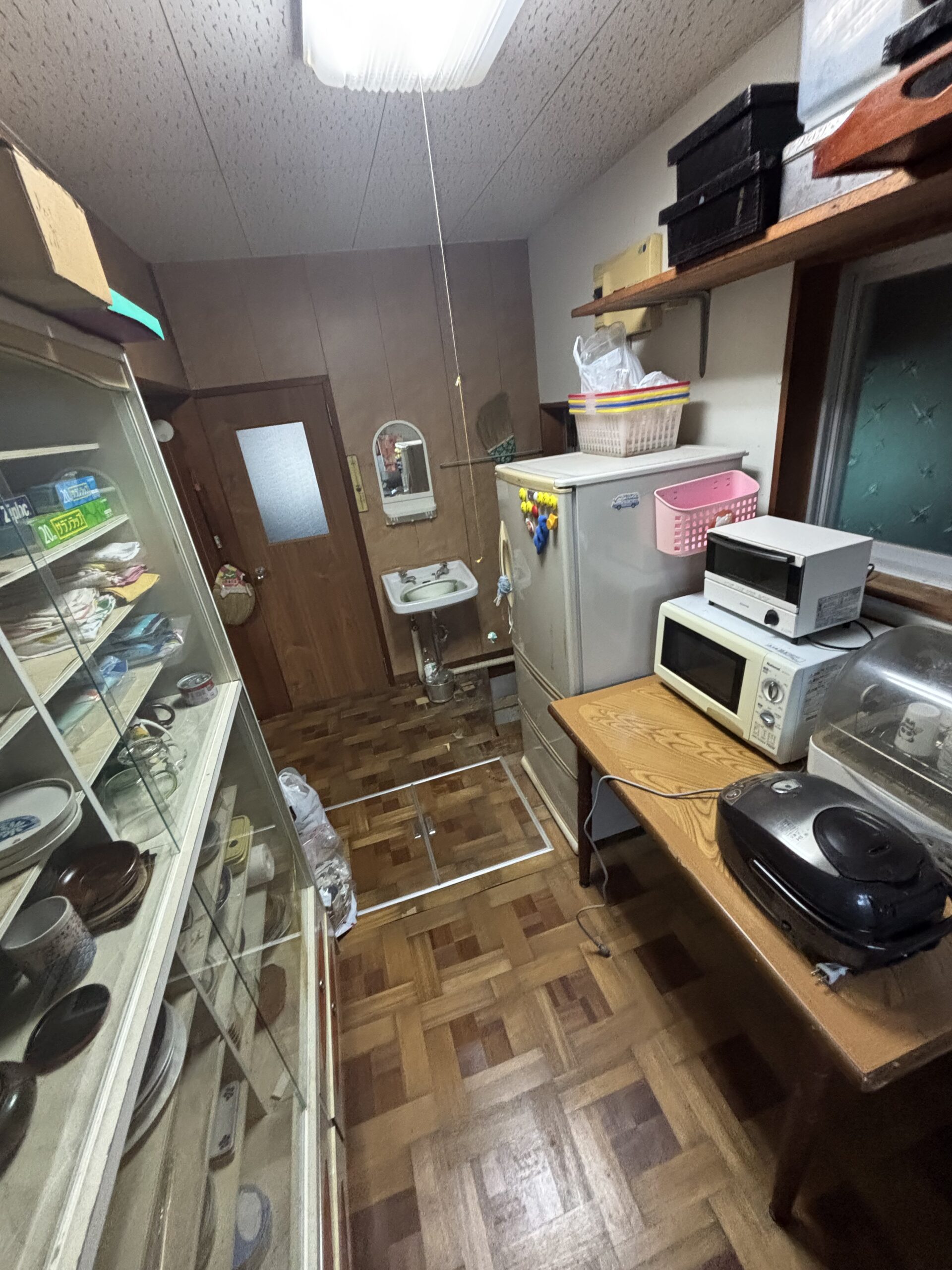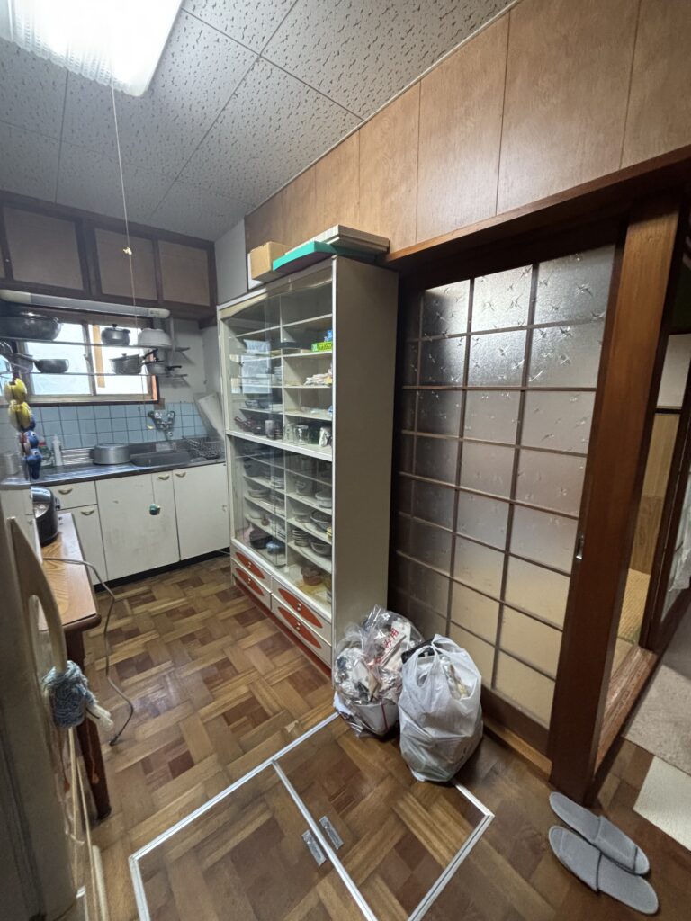 キッチンと横の部屋を仕切っているガラス障子を二枚とも外すことでLDKとして利用することもできます。